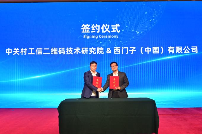 会上还举行了中关村工信二维码技术研究院与西门子(中国)有限公司、统一标识代码注册管理中心与天津中车融资租赁有限公司的合作签约仪式,各方共同推进MA标识代码融入数字信息基础设施建设,携手为中国数字化进程、新质生产力发展贡献力量。